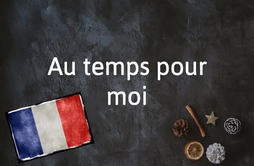 The expression au temps pour moi, roughly pronounced oh tahn poor mwah (listen here), translates to “to the time for me”, but in reality it means “my mistake” or “I was wrong”.
